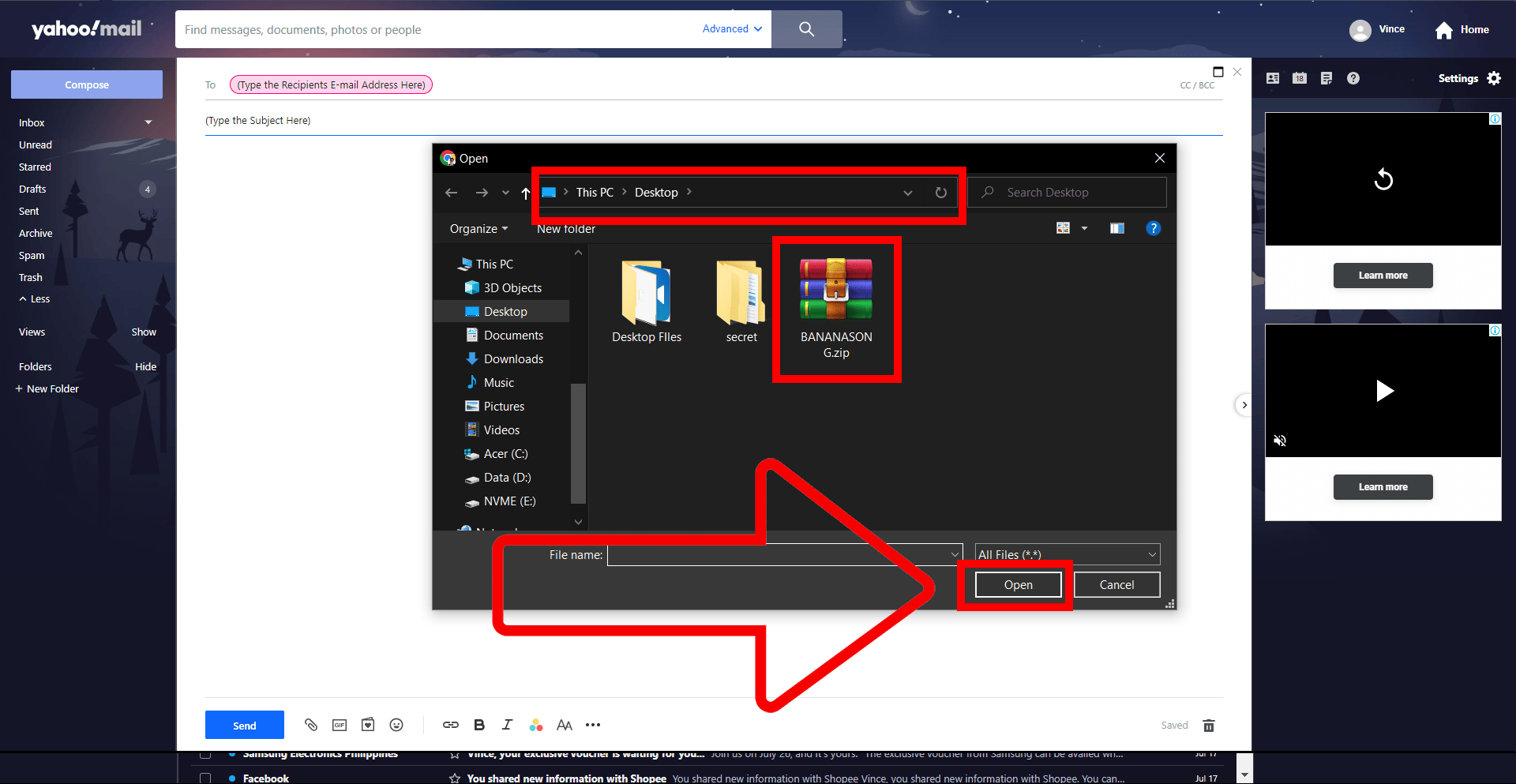 - Method 3: Attach a ZIP File to an E-mail in Yahoo Mail