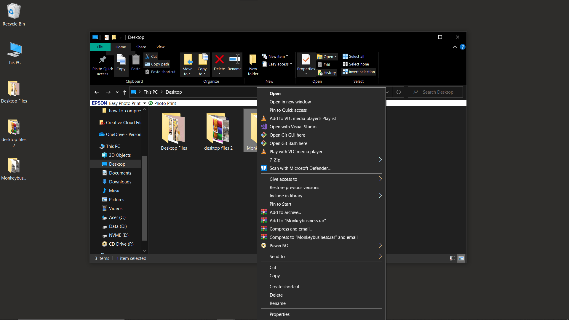 Send to: Hover over the Send to option in the dropdown menu. No, not to your monkey friend, but to Compressed (zipped) folder.