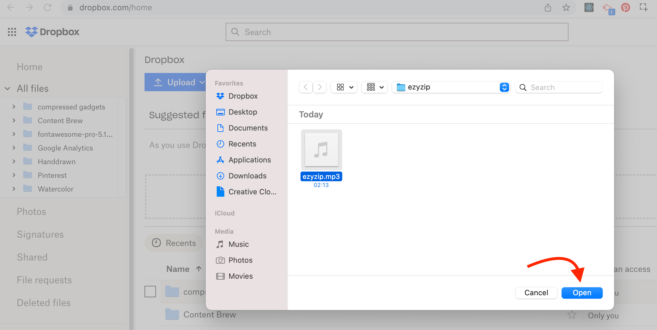 Upload: Navigate to the file you want to upload, select it, and click “Open”. Your file will start uploading faster than a monkey can swing from branch to branch!
