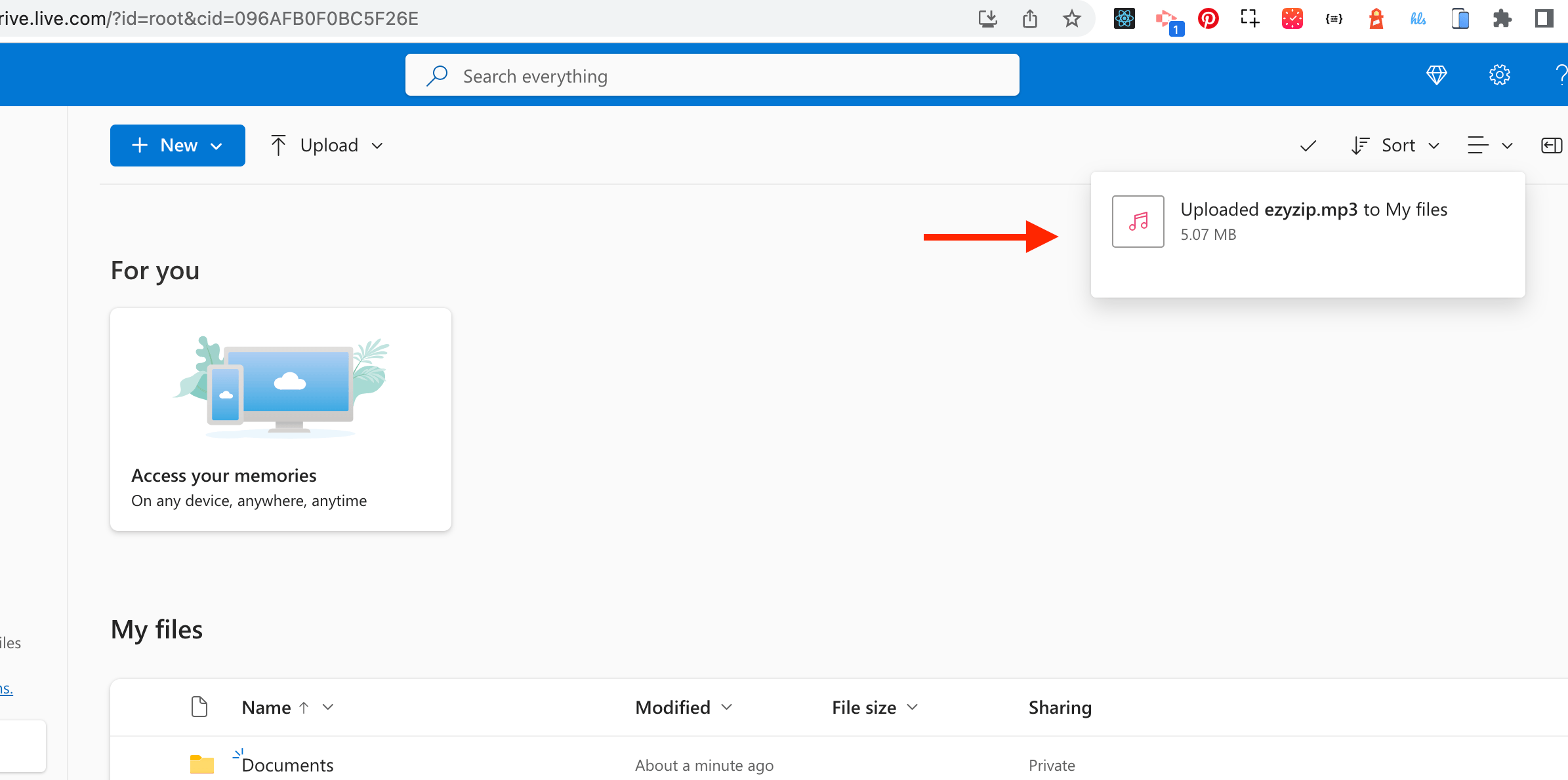 Upload Button: Click on the “Upload files” button in the top right corner of the screen.