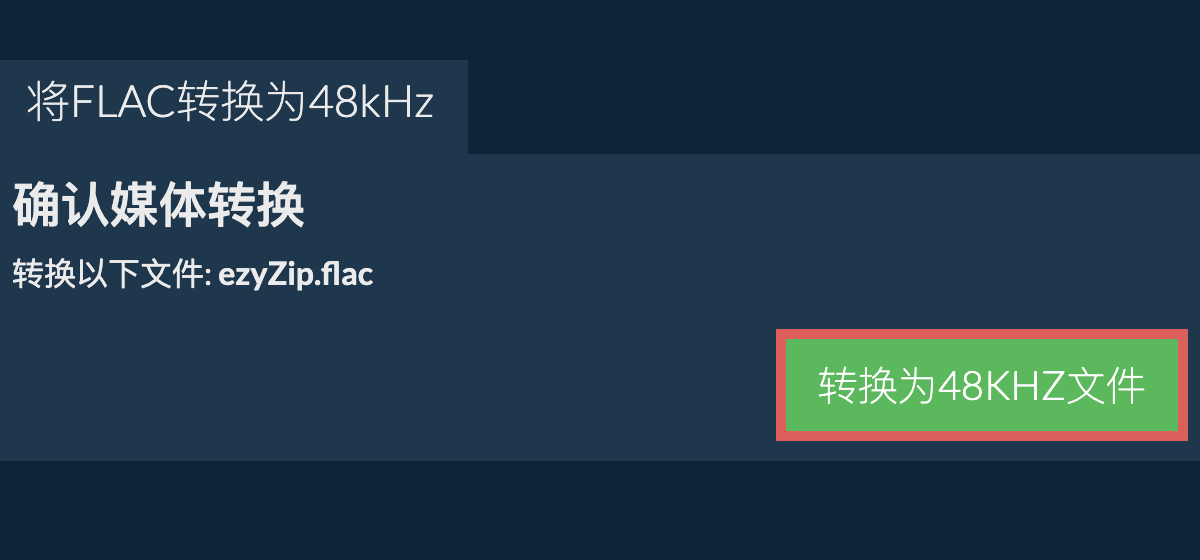 点击“选择要压缩的 flac 文件”打开文件选择器 - 点击“转换为48kHz”。这将启动采样率转换过程,完成需要一些时间。
