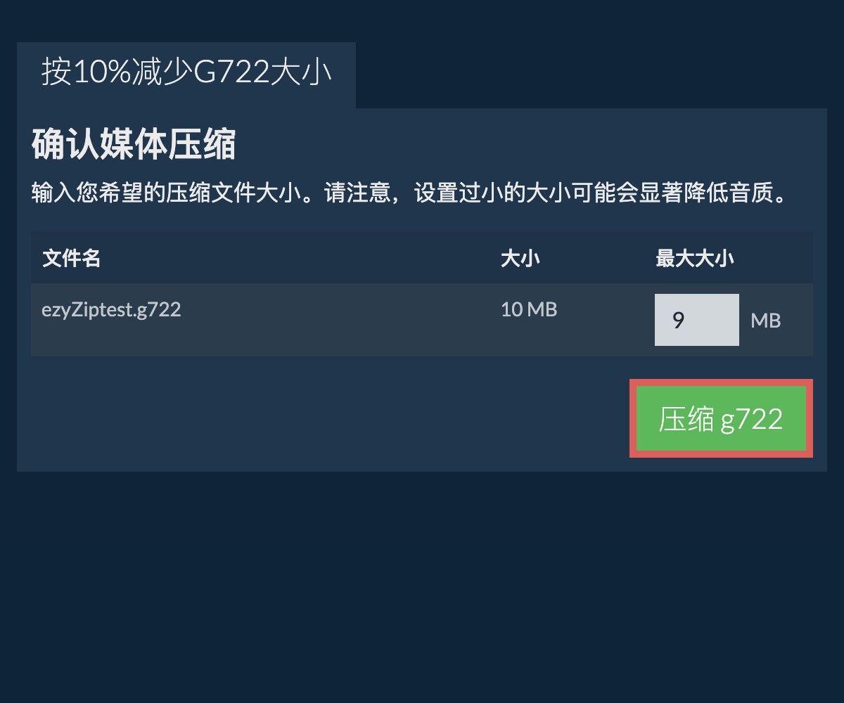 这里是使用ezyZip按10%减少g722大小的步骤。