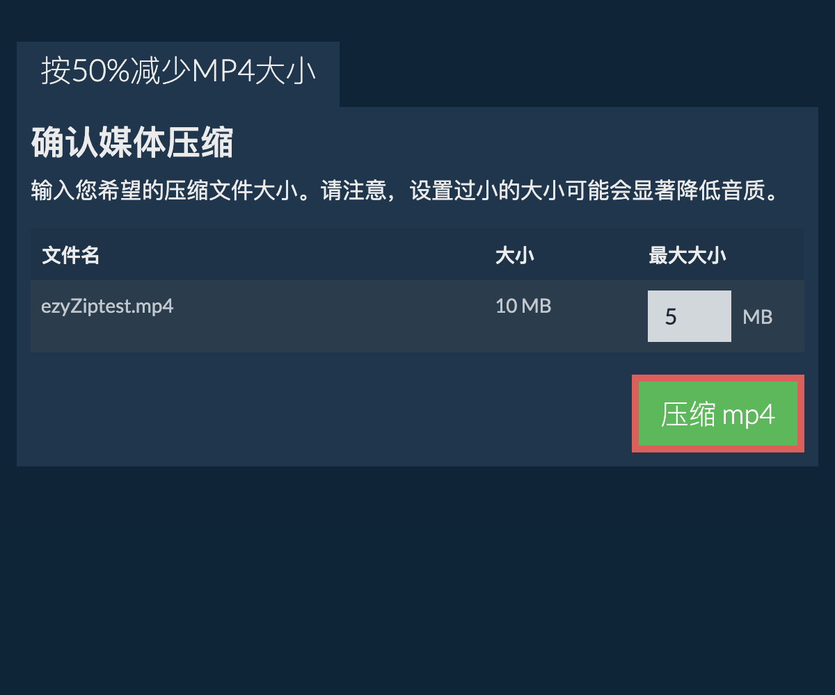 这里是使用ezyZip按50%减少mp4大小的步骤。