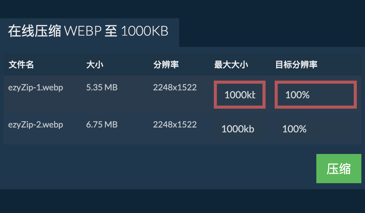 使用 ezyZip 在线压缩 WEBP 至 1000KB 的分步说明。