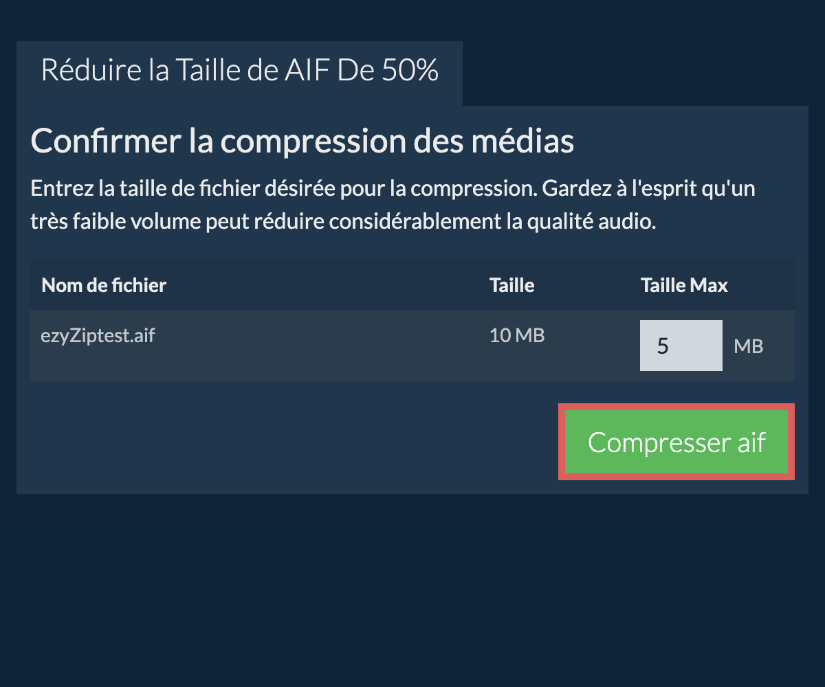 - Cliquez sur "Sélectionnez le fichier aif à compresser" pour ouvrir le sélecteur de fichiers
