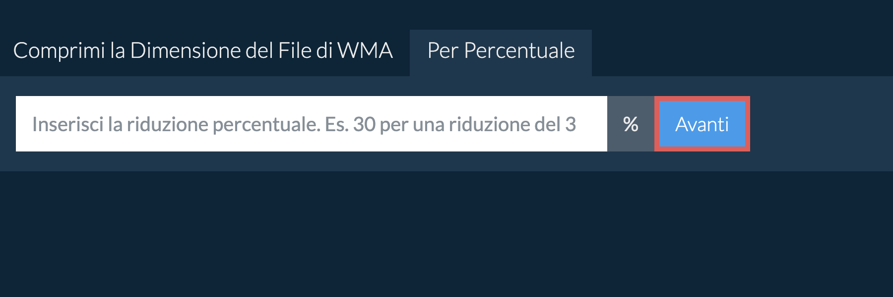 - Per ridurre WMA in percentuale, clicca sulla scheda "Per Percentuale" e inserisci la tua riduzione percentuale desiderata. Es. 30 per una riduzione del 30% della dimensione del file e clicca su "Avanti".