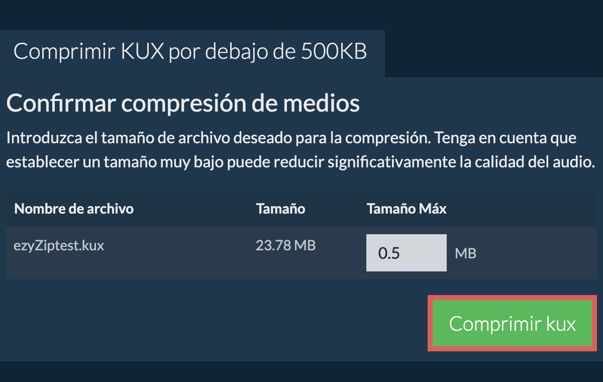 - Haga clic en "Seleccionar archivo kux para comprimir" para abrir el selector de archivos