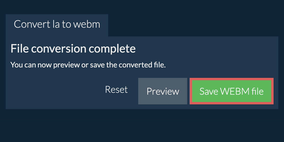 Click "Select LA file to convert" to open the file chooser - Click "Convert to WEBM". It will start the conversion process which will take some time to complete.