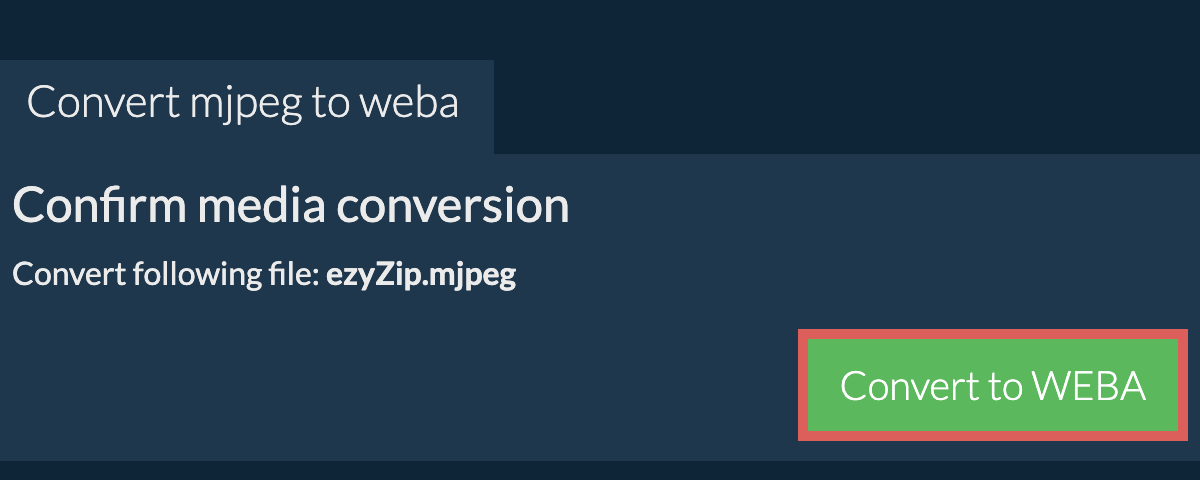 ezyZip is a free online MJPEG to WEBA converter that runs in your browser. No need to install any additional converter software. It supports a myriad of other media conversions too.