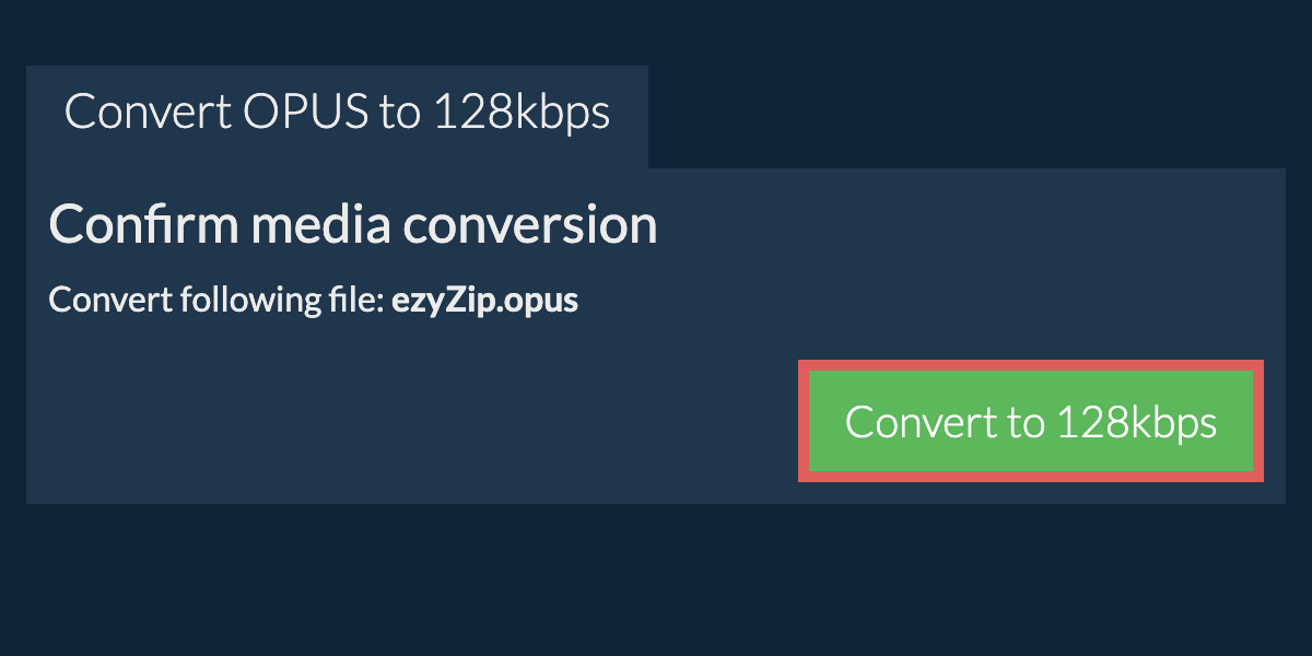 ezyZip is a free online opus to 128kbps bitrate converter that runs in your browser. No need to install any additional compression software. It supports a myriad of other media types and bitrates.