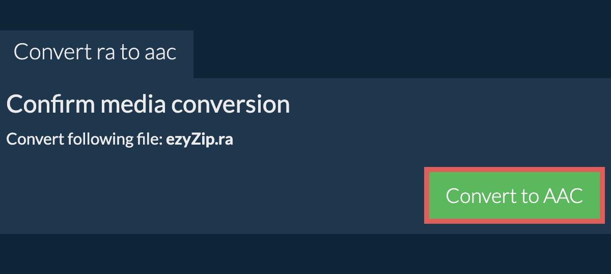 ezyZip is a free online RA to AAC converter that runs in your browser. No need to install any additional converter software. It supports a myriad of other media conversions too.