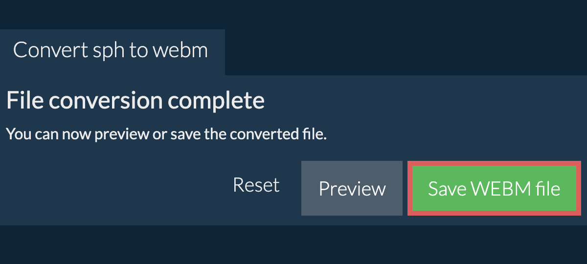 Click "Select SPH file to convert" to open the file chooser - Click "Convert to WEBM". It will start the conversion process which will take some time to complete.