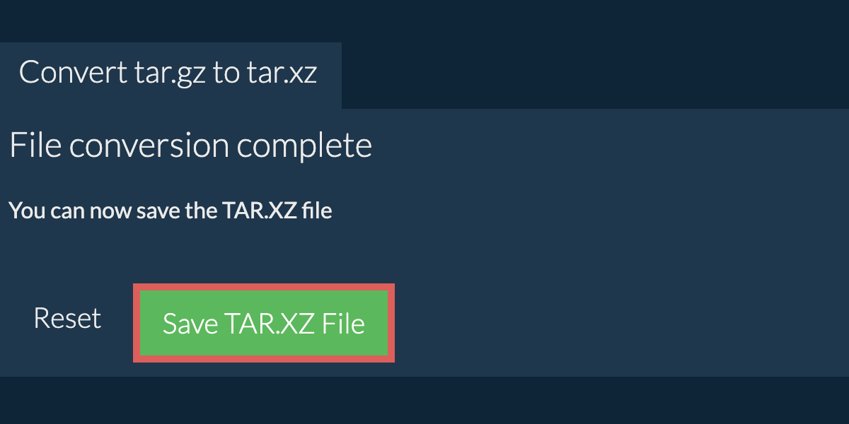 - Click "Convert to TAR.XZ". It will start the conversion process which will take some time to complete.