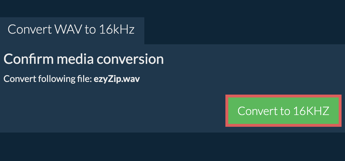 ezyZip is a free online wav to 16kHz sample rate converter that runs in your browser. No need to install any additional compression software. It supports a myriad of other media types and sample rates.