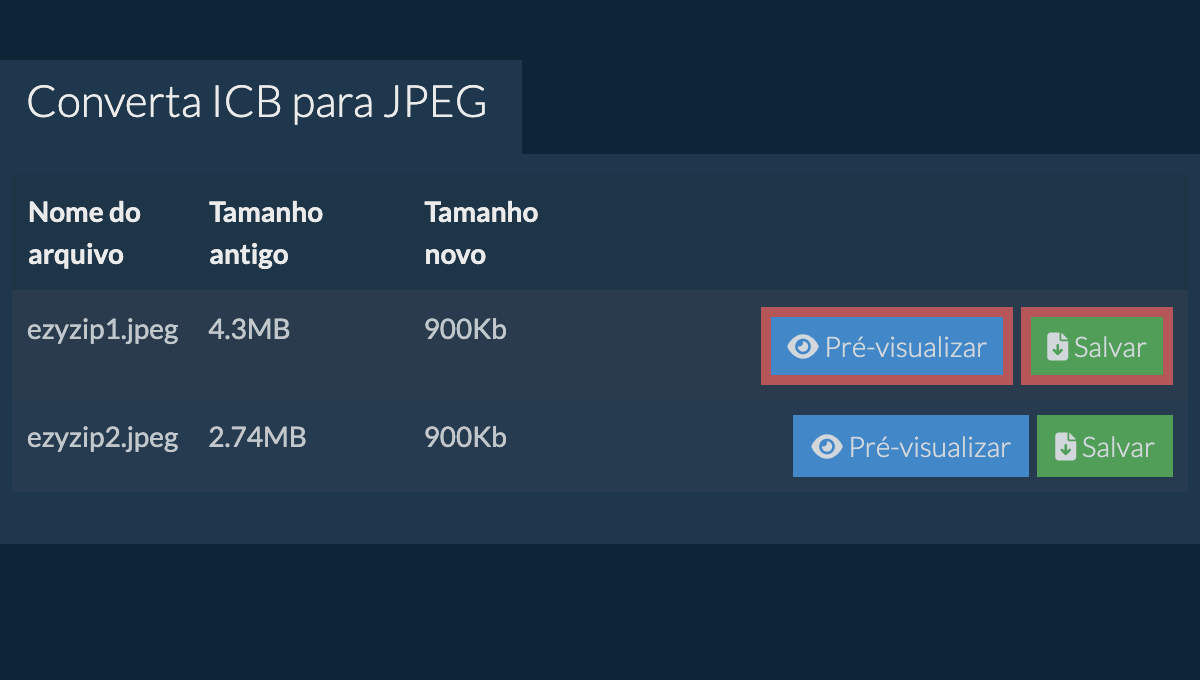 ezyZip é um conjunto de utilitários para comprimir e converter arquivos, incluindo este conversor de ICB para JPEG. Não é necessário instalar nenhum software adicional. Ele também suporta uma infinidade de outras opções de conversão de imagens.
