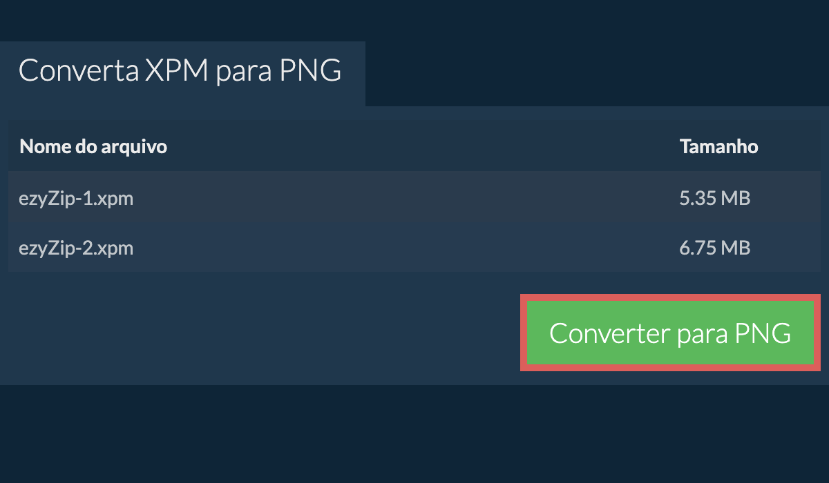 Instruções passo a passo mostrando como converter uma imagem XPM para PNG online usando ezyZip.