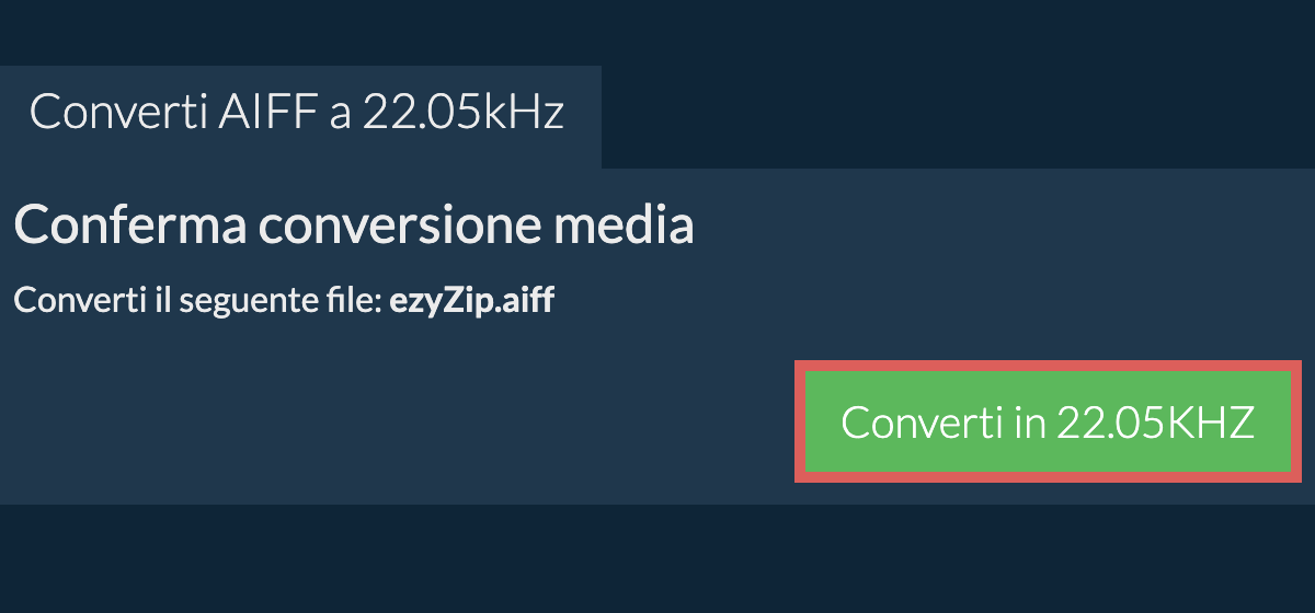 ezyZip è un convertitore gratuito di tasso di campionamento da aiff a 22.05kHz online che funziona nel tuo browser. Non è necessario installare software di compressione aggiuntivo. Supporta una miriade di altri tipi di media e tassi di campionamento.