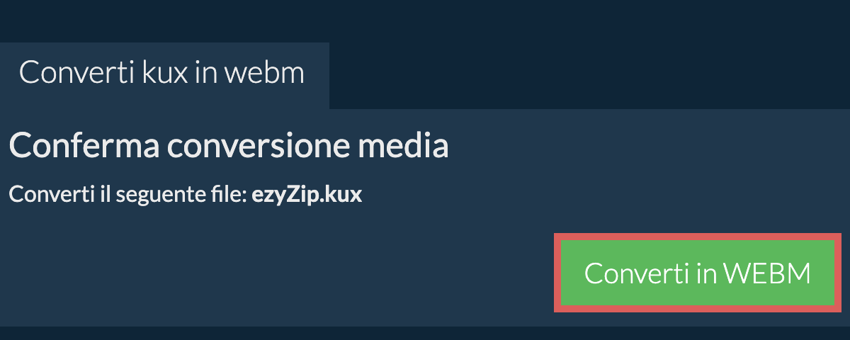 Clicca su "Seleziona il file KUX da convertire" per aprire la selezione file - Clicca su "Converti in WEBM". Inizierà il processo di conversione che richiederà un po di tempo per completare.