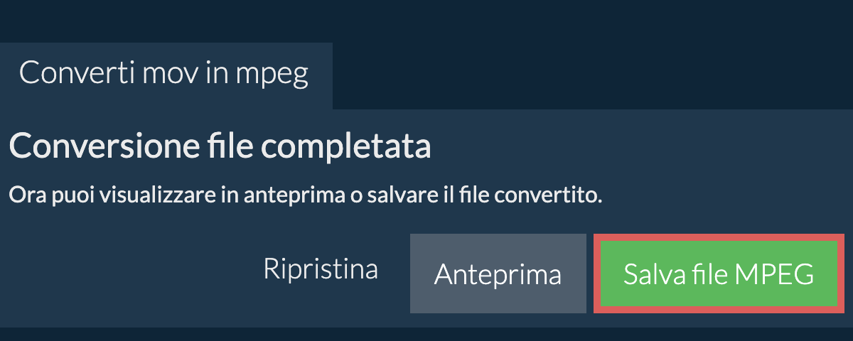- Clicca su "Salva file MPEG" per salvare il file MPEG convertito nella cartella di destinazione selezionata.