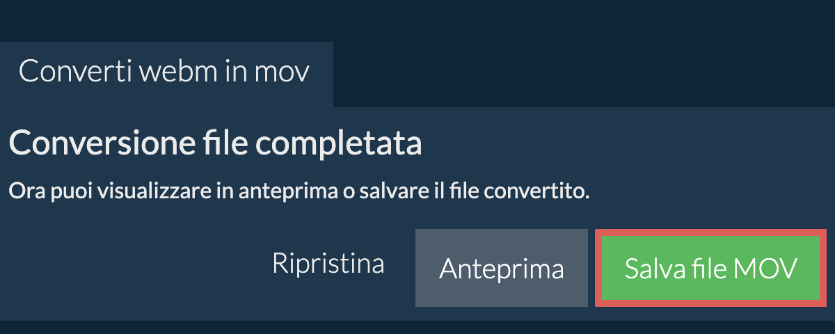 Clicca su "Seleziona il file WEBM da convertire" per aprire la selezione file - Clicca su "Converti in MOV". Inizierà il processo di conversione che richiederà un po di tempo per completare.