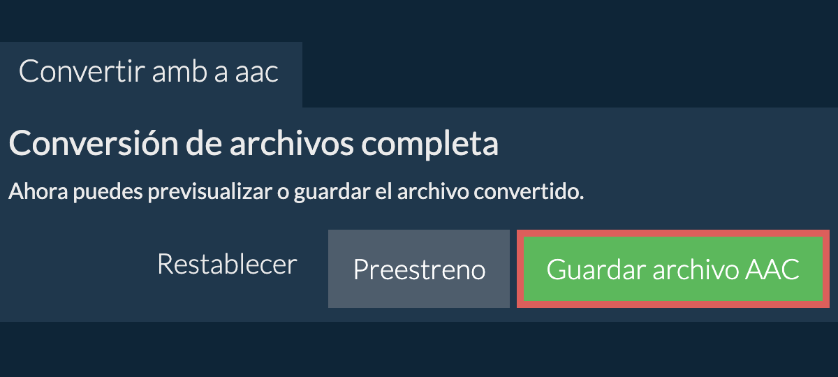 - Haz clic en "Guardar archivo AAC" para guardar el archivo AAC convertido en la carpeta de destino seleccionada.
