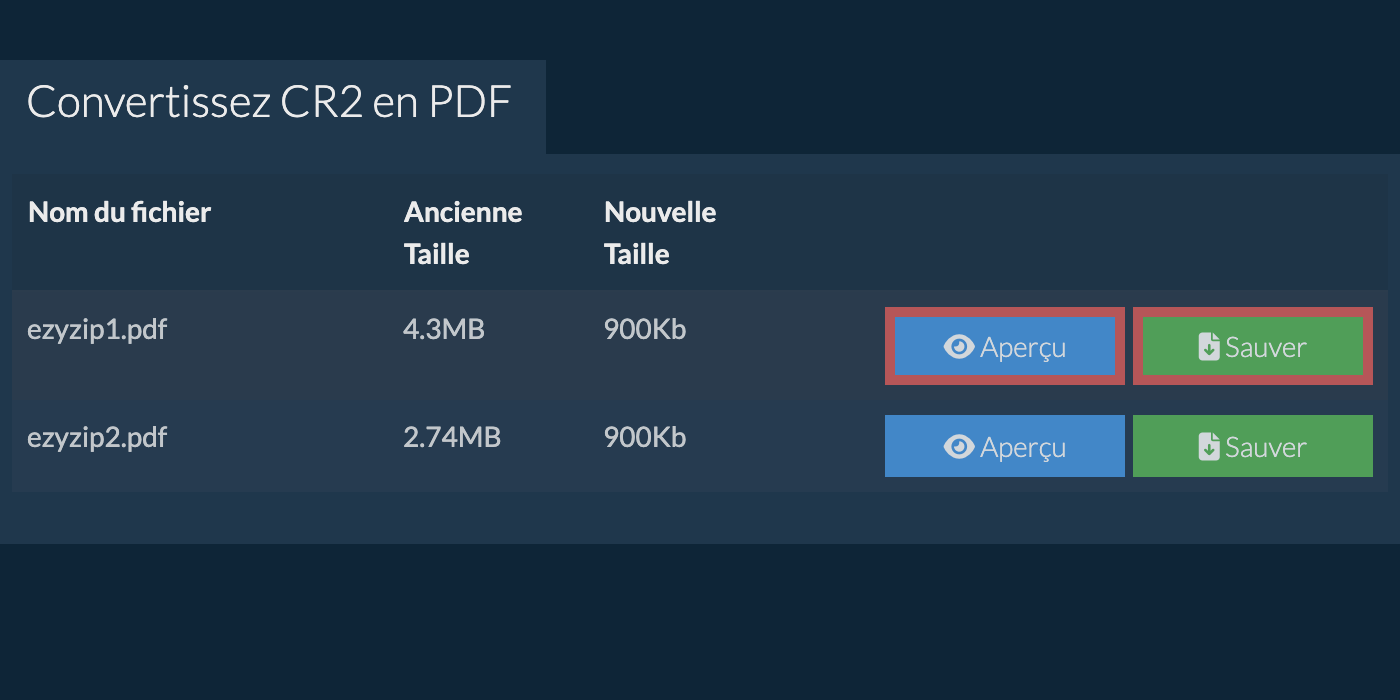 ezyZip est un ensemble d'utilitaires pour compresser et convertir des fichiers, y compris ce convertisseur de CR2 à PDF. Pas besoin d'installer de logiciel supplémentaire. Il prend en charge une multitude d'autres options de conversion d'images aussi.