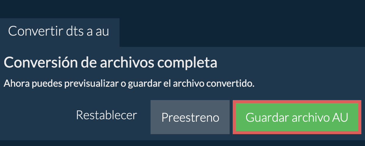 Haz clic en "Seleccionar archivo DTS para convertir" para abrir el selector de archivos - Haz clic en "Convertir a AU". Comenzará el proceso de conversión que tardará algún tiempo en completarse.