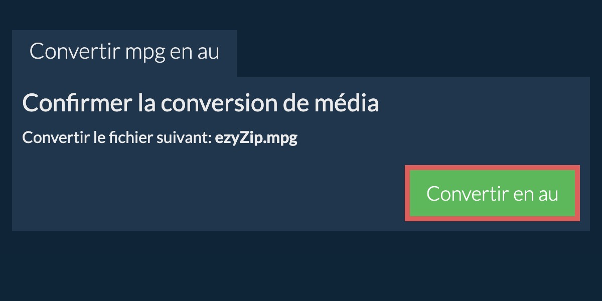 ezyZip est un convertisseur MPG en AU en ligne gratuit qui fonctionne dans votre navigateur. Pas besoin d'installer de logiciel de conversion supplémentaire. Il prend en charge une myriade d'autres conversions de médias également.