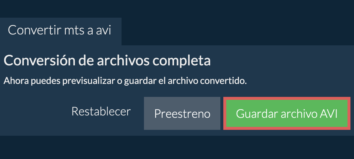 Haz clic en "Seleccionar archivo MTS para convertir" para abrir el selector de archivos - Haz clic en "Convertir a AVI". Comenzará el proceso de conversión que tardará algún tiempo en completarse.