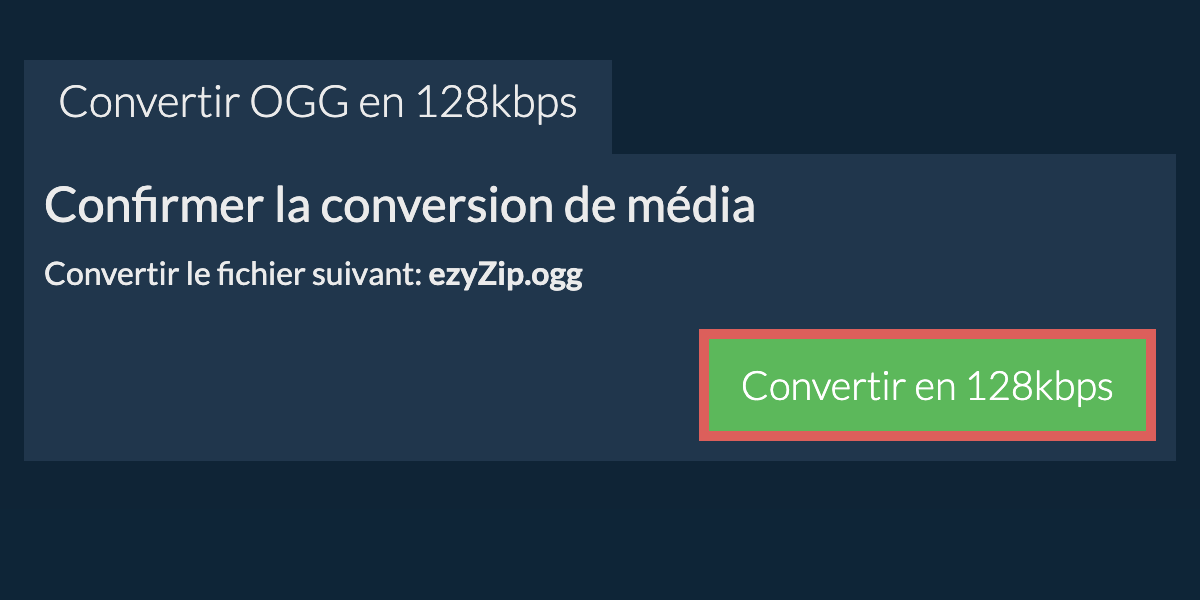 ezyZip est un convertisseur gratuit en ligne de débit de ogg en 128kbps qui fonctionne dans votre navigateur. Aucun logiciel de compression supplémentaire n'est nécessaire. Il prend en charge une multitude d'autres types de médias et de débits.
