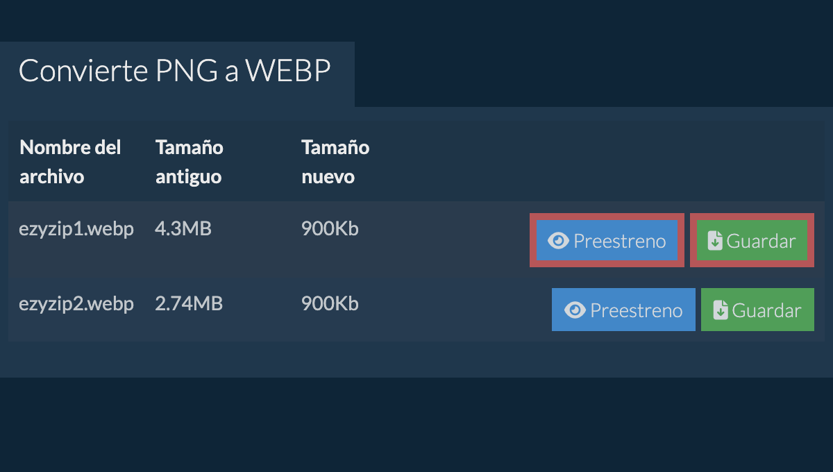 ezyZip es un conjunto de utilidades para comprimir y convertir archivos, incluido este convertidor de PNG a WEBP. No es necesario instalar ningún software adicional. También admite una multitud de otras opciones de conversión de imágenes.