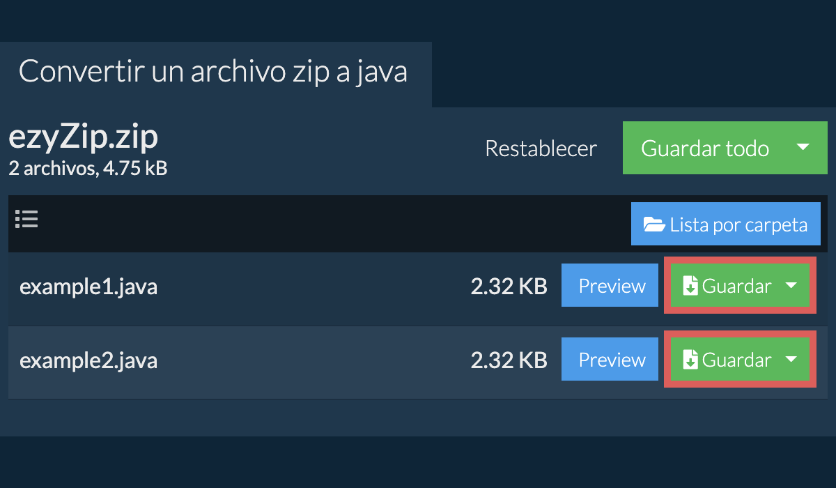 ezyZip es una utilidad en línea gratuita para extraer archivos JAVA de un archivo zip. No es necesario instalar software adicional ya que se ejecuta en el navegador. También es compatible con muchas otras opciones de extracción y conversión de archivos.
