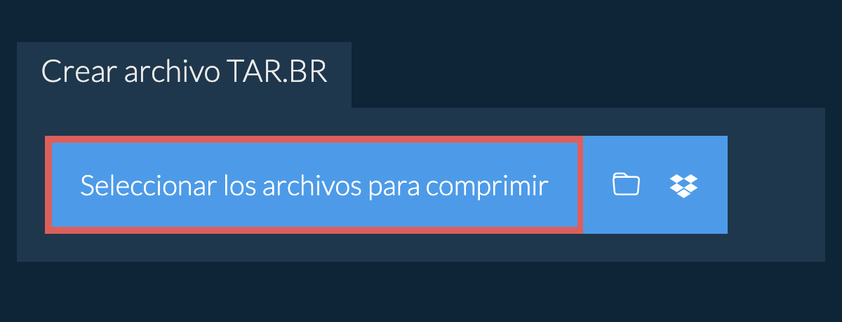 - Para guardar el archivo TAR.BR resultante a Dropbox, hacer clic en el desplegable de "Dropbox" bajo el botón "Guardar Archivo TAR.BR". Esto requerirá la autorización la primera vez que lo ejecute.