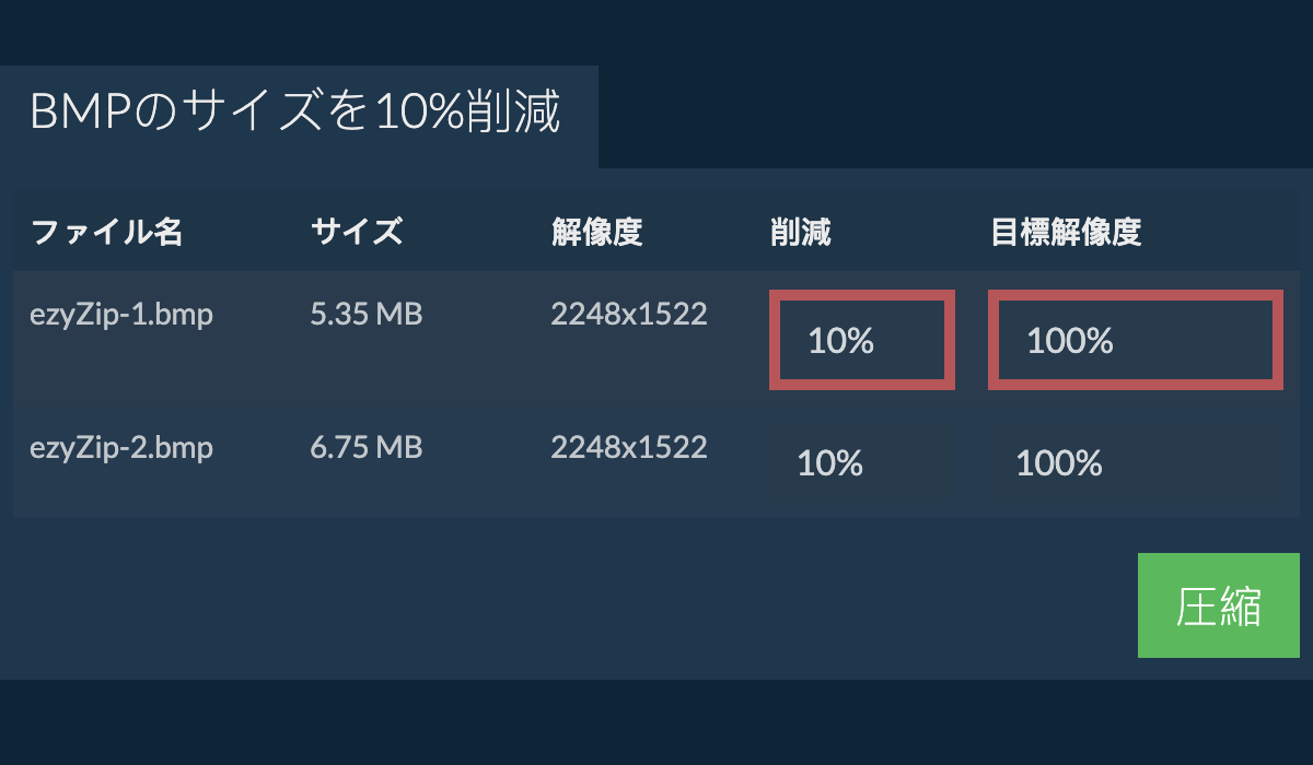 - 「圧縮するBMPを選択」をクリックして、サイズを削減したいファイルを選択します
