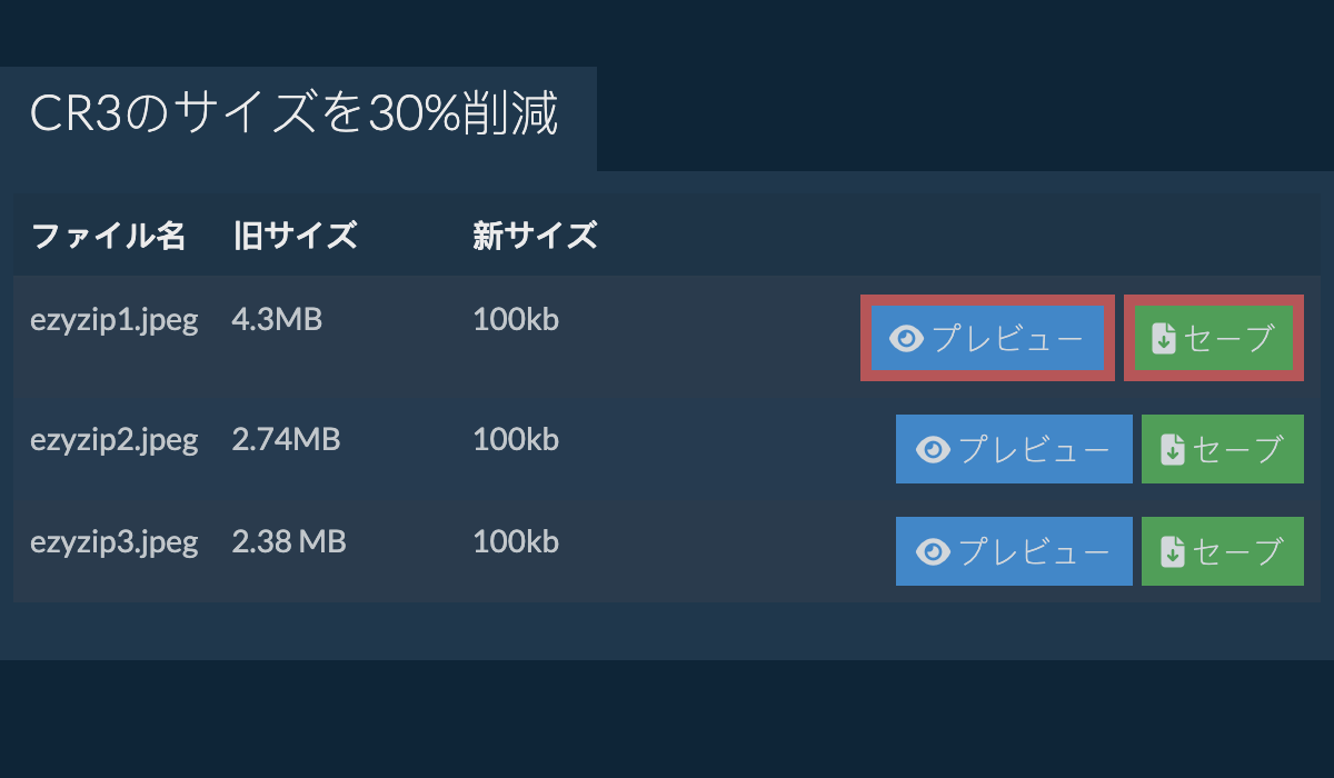 ezyZipは圧縮ファイルを扱うためのユーティリティセットです。CR3ファイルを30%削減するための無料オンラインユーティリティです。追加のソフトウェアをインストールする必要はありません。画像圧縮オプションも多数サポートしています。
