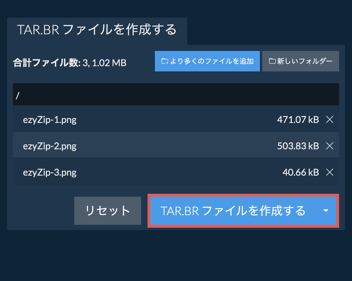 - 「TAR.BR ファイルを作成」をクリックします。ファイルの圧縮が始まります。