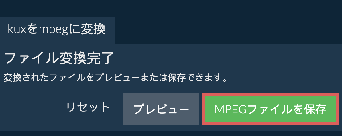 "KUXファイルを変換する"をクリックしてファイル選択画面を開く - "MPEGに変換"をクリックします。変換プロセスが開始され、完了するまでに時間がかかります。