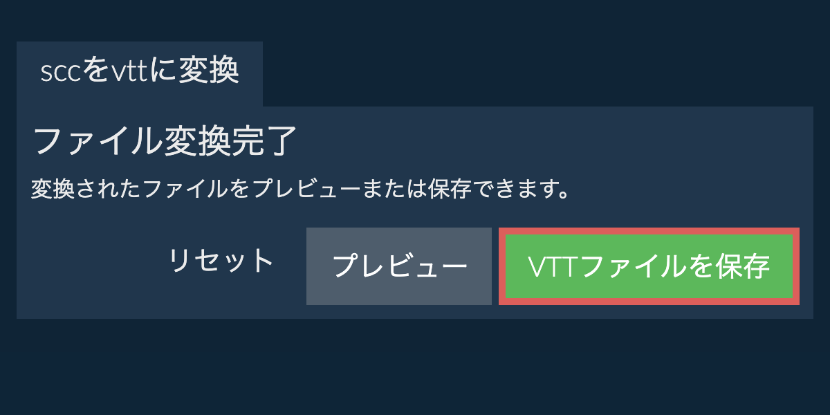 - "変換したVTTファイルを保存"をクリックして、変換したVTTファイルを選択した保存先フォルダーに保存します。
