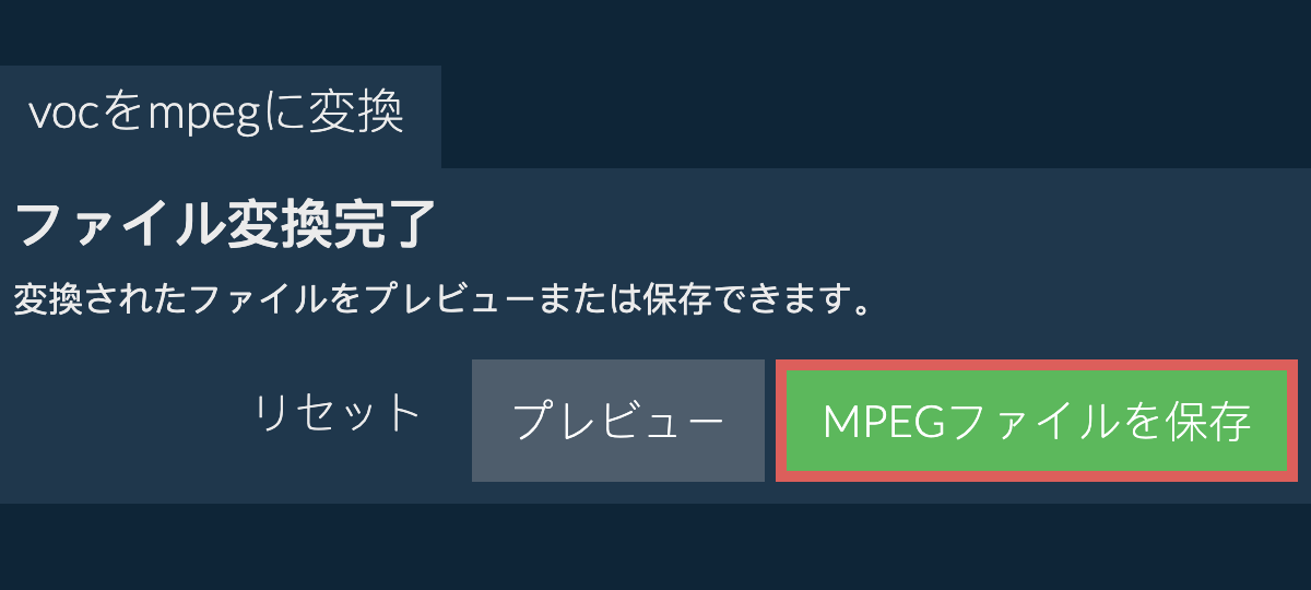 "VOCファイルを変換する"をクリックしてファイル選択画面を開く - "MPEGに変換"をクリックします。変換プロセスが開始され、完了するまでに時間がかかります。