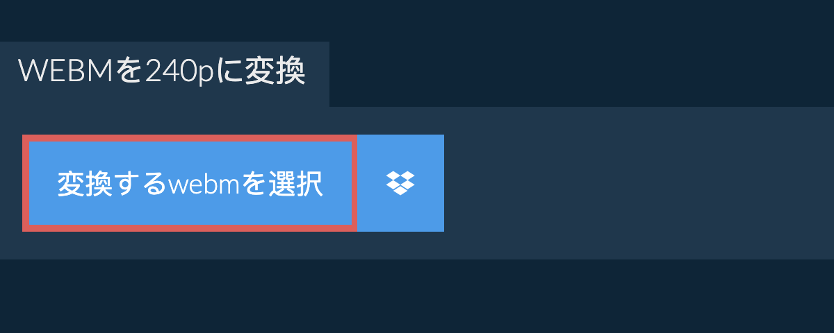 "webmファイルを圧縮する"をクリックしてファイル選択器を開く - "240pに変換"をクリックすると、ダウンスケール処理が開始され、完了までに時間がかかります。