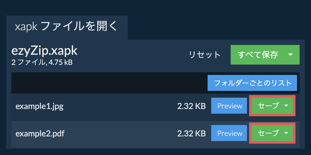 はい、ezyZipには特別なアーカイブ内容プレビュー機能があり、XAPKアーカイブ内の特定の種類のファイルの内容を抽出することなく表示できます。この機能は、画像、オーディオ、ビデオ、ドキュメントなど、さまざまなファイルタイプをサポートしており、これらのファイルの内容をアーカイブ内で迅速かつ便利に確認またはチェックする方法を提供します。青色の「プレビュー」ボタンをクリックしてください。