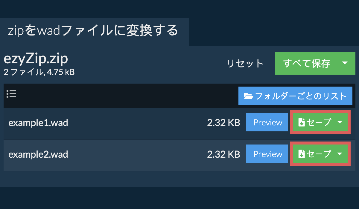 ZIPアーカイブをezyZipを使用して WAD ファイルに変換する手順は次のとおりです。