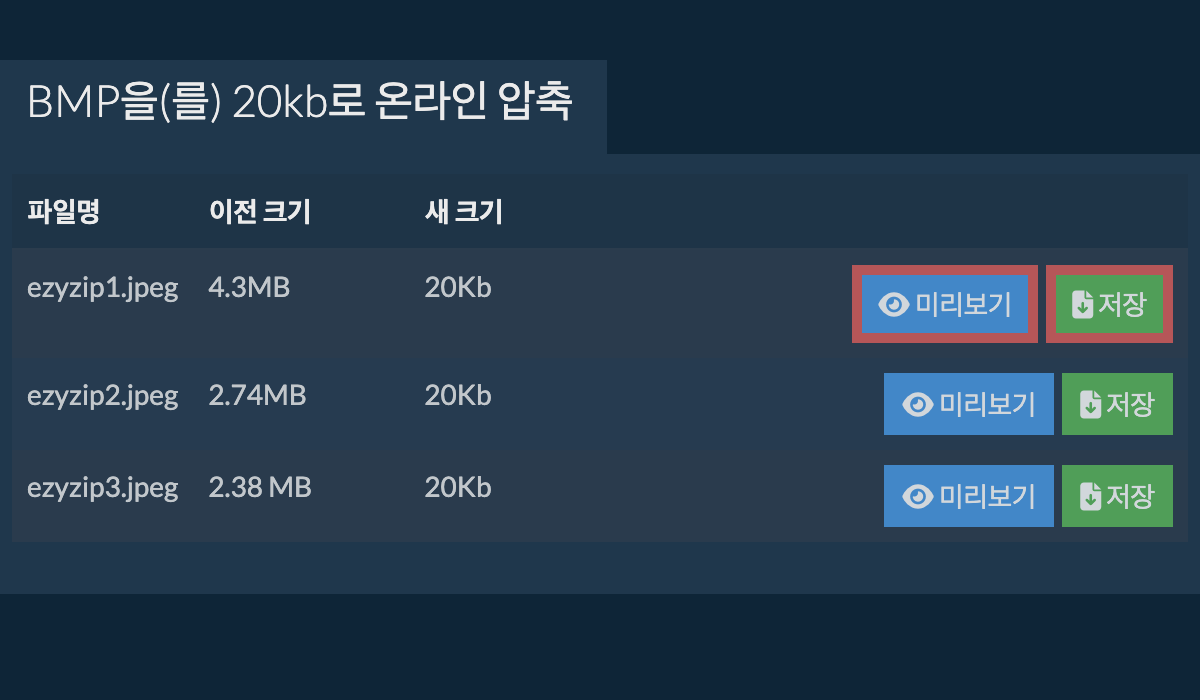 ezyZip을 사용하여 BMP을(를) 20kb로 온라인 압축하는 방법을 단계별로 안내합니다.