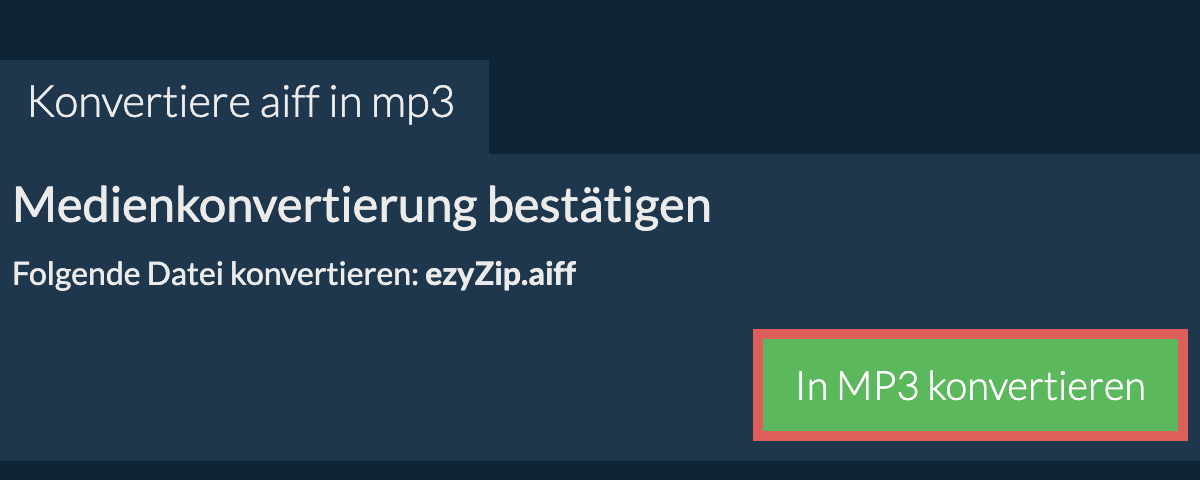 Klicken Sie auf "Wählen Sie AIFF Datei zum Konvertieren", um den Dateiauswähler zu öffnen - Klicken Sie auf "In MP3 konvertieren". Der Konvertierungsprozess beginnt und wird einige Zeit in Anspruch nehmen.