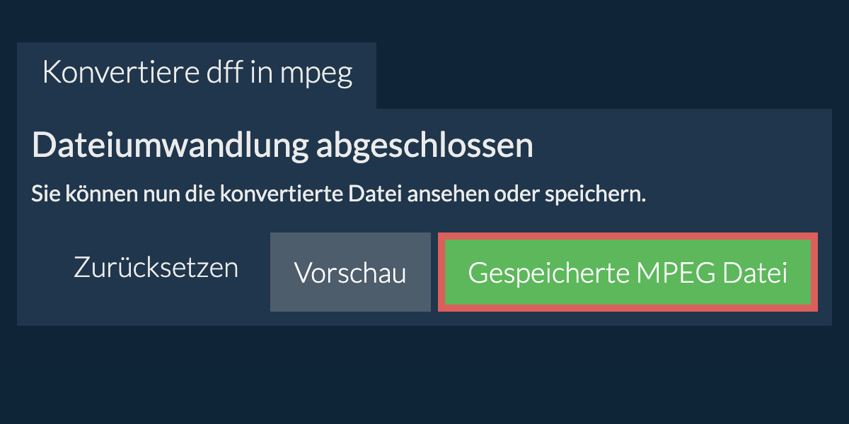Klicken Sie auf "Wählen Sie DFF Datei zum Konvertieren", um den Dateiauswähler zu öffnen - Klicken Sie auf "In MPEG konvertieren". Der Konvertierungsprozess beginnt und wird einige Zeit in Anspruch nehmen.