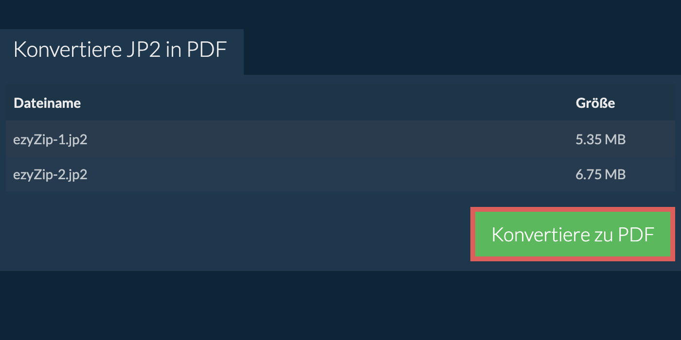 Schritt-für-Schritt-Anleitung, wie Sie JP2 in PDF online mit ezyZip konvertieren.