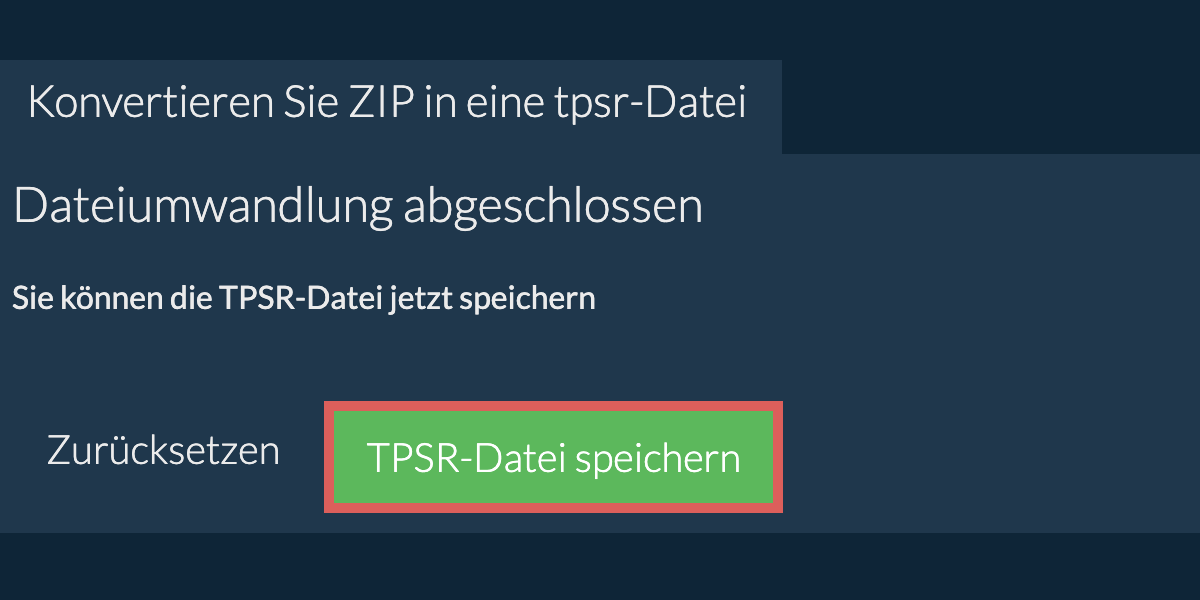 - Klicken Sie auf "TPSR-Datei speichern", um die konvertierte TPSR-Datei auf Ihrem lokalen Laufwerk zu speichern.