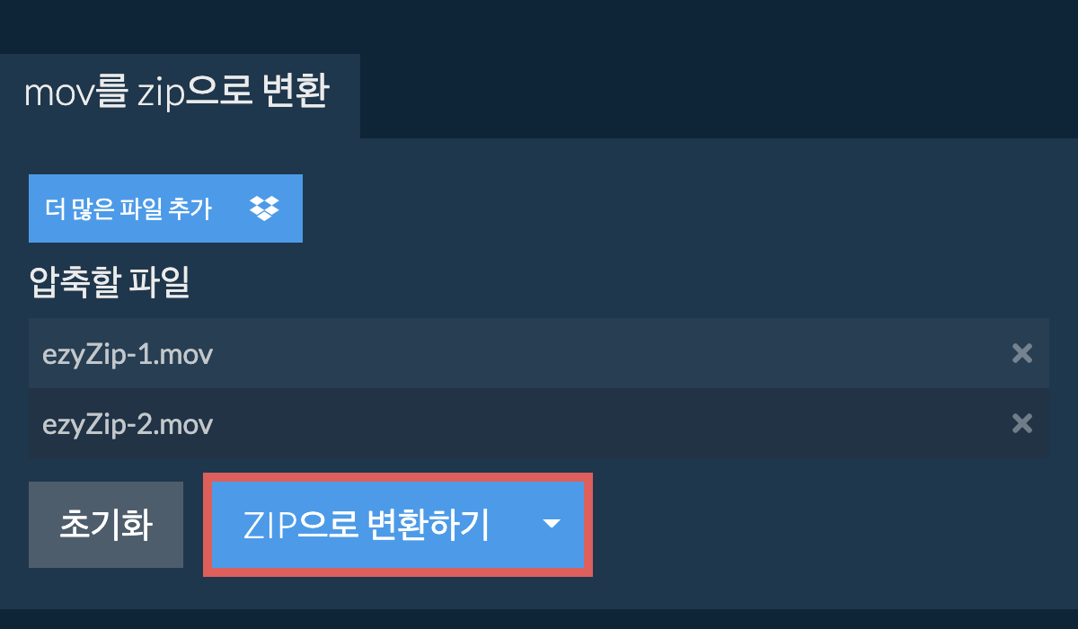 - 드래그 앤 드롭하여 MOV파일을 ezyZip에 직접 이동하세요
