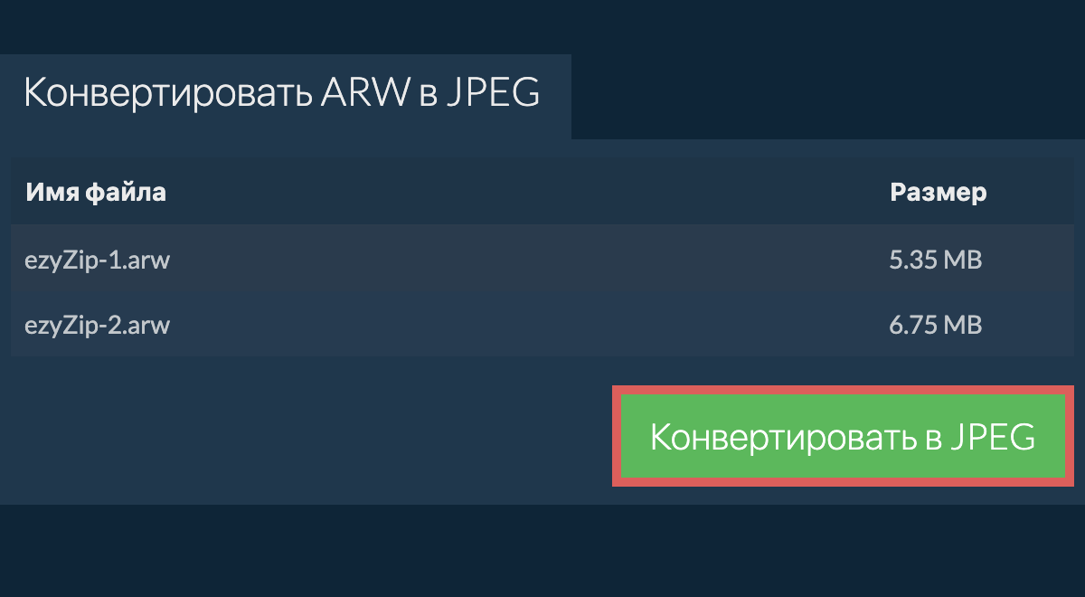 Пошаговая инструкция, показывающая, как конвертировать изображение из ARW в JPEG онлайн с помощью ezyZip.