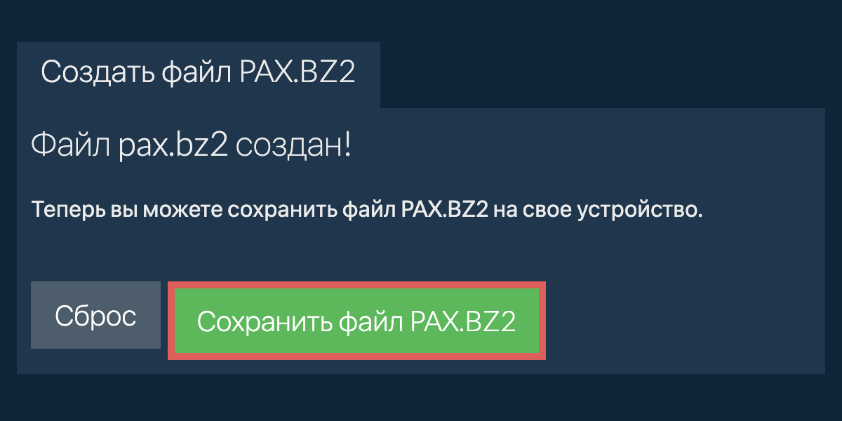 - Нажмите "Сохранить файл PAX.BZ2", чтобы сохранить архив в выбранной папке назначения.